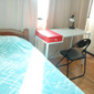 • 2 habitaciones singles que comparten 1 baño, con camas box spring, mesa de noche, escritorio plegable y armario para cada cual