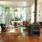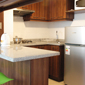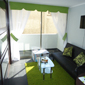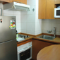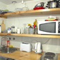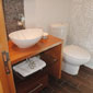 • Kitchenette equipped with a gas hub, electric oven, water boiler, a mid sized fridge, pots, cutlery, tableware & glasses